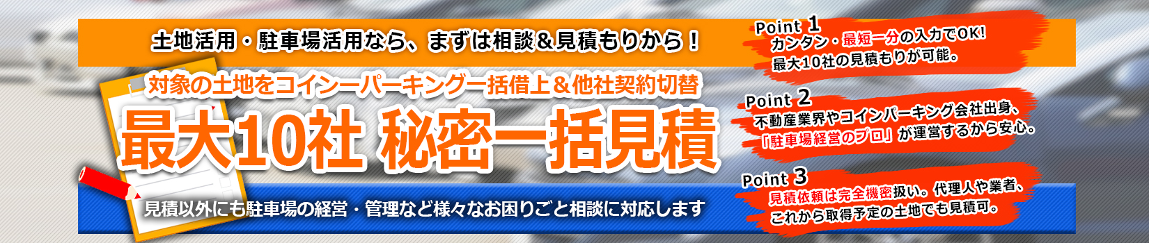 月極からコインパーキングまで駐車場経営の悩みを解決・ノウハウを公開。駐車場運営の総合相談&一括見積サイト
