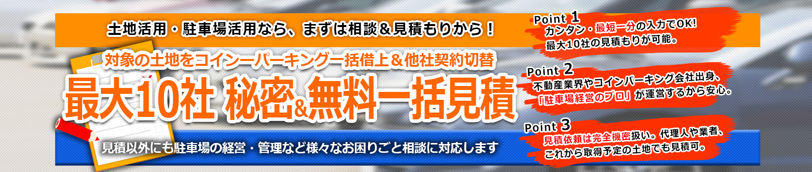 月極からコインパーキングまで駐車場経営の悩みを解決・ノウハウを公開。駐車場運営の総合相談&一括見積サイト